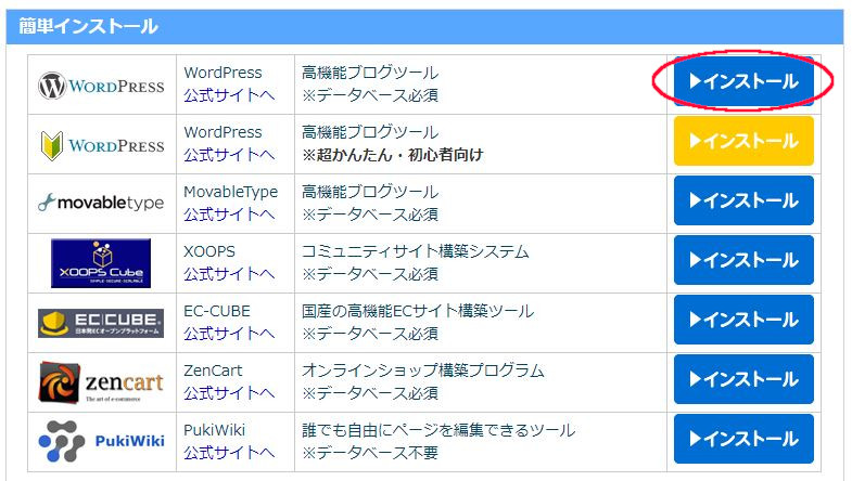 一番上のWordPressのインストールを押します。